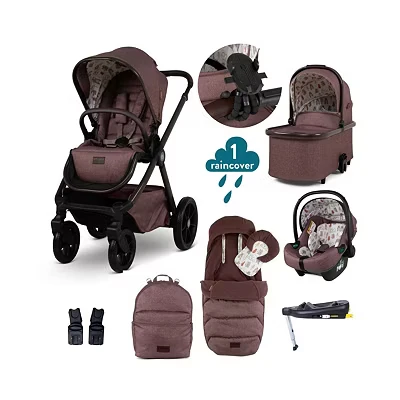 COSATTO Giggle 4 Travel System Bundle, Birth to 25kg, Pram, Pushchair, Carrycot & i Size Group 0+ Infant Carrier Car Seat Base, Footmuff, Backpack, Free Raincover Phone Holder (Bear Hug)