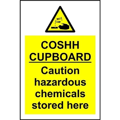 COSHH Cupboard Safety Sign 3mm Aluminium sign 600mm x 400mm Digitally printed and laminated for extra durability 10mm Radius rounded corners, no sharp edges, Manufacturer: KPCM Display