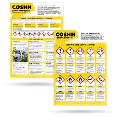 COSHH Safety Posters Set of 2 Health and Laminated Gloss Paper 420mm x 594mm (A2) Office Commercial Wall Charts Education by Daydream