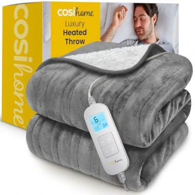 Cosi Home® Luxury Heated Throw Electric Blanket Extra Large Blanket, Machine Washable Fleece & Sherpa with Digital Remote, Timer and 10 Heat Settings