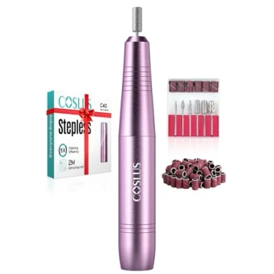 COSLUS Electric Nail Drill, Files for Gel Acrylic Nature Nails, Adjustable Speed 0 20000RPM, Portable Manicure Pedicure Set with 6 Drill Bits 31 Sanding Bands, E File Beginner Girl Women Mum