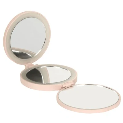 COSMETIC CLUB, SC0691 Triple LED Magnifying Mirror, Adjustable Illumination, Elegant Design, Ideal for Makeup and Care, Foldable Compact, Pink, 10 x 7 cm