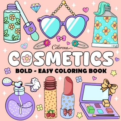 Cosmetics Bold and Easy Coloring Book: 40 Cute Relaxing Illustrations for Adults Featuring Simple Makeup Designs Women, Girls Teens
