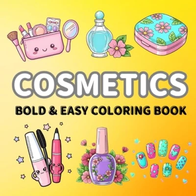 Cosmetics Bold and Easy Coloring Book: Big, Simple, Relaxing Designs for Kids, Teens, Adults
