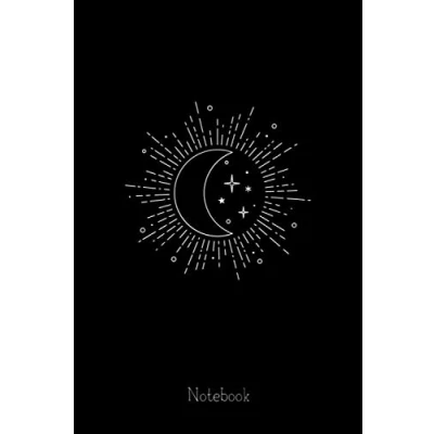 Cosmic Moon and Stars Black White Notebook: Lined Notebook Journal