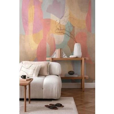 WallpaperDirectA pattern of overlapping large random shapes with curved edges. Created in shades of pink, blue, purple, teal and brown. Technically the design does not repeat left to right but as you can see you can put two panels together if you like the look. Supplied on a roll 53 cm or 20.8 inches wide.