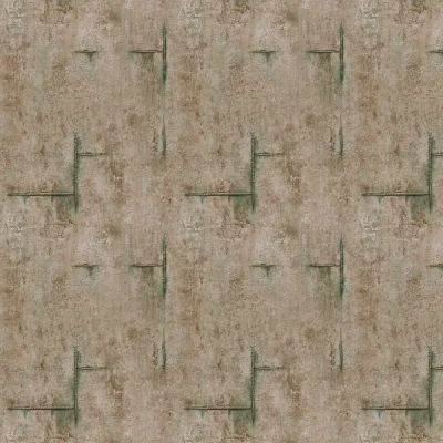 WallpaperDirectA lightly textured vinyl wallcovering with a faux stone effect with distressed lines and a mottled plaster look. Shown in the brown with green detail.