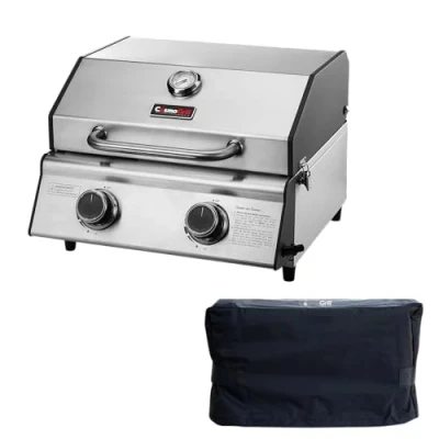 CosmoGrill Compact Gas Stainless Steel 2 Burner BBQ Ideal For Tables Grills Terraces Camping (Compact With Cover)