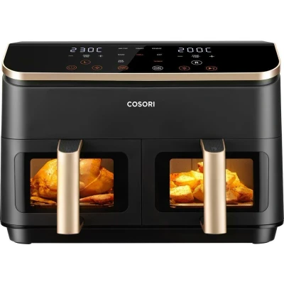 This Cosori Dual Basket Air Fryer is your shortcut to mealtime mastery. With two independent cooking zones, you can whip up mains and sides at the same time eeach with its own settings. Want to Bake in one drawer and Air Fry in the other? The SyncFinish function ensures everything is ready to serve together, piping hot and perfectly cooked. And that's not all. You've got eight cooking functions to choose from- Air Fry, Roast, Bake, Reheat, Grill, Dry and SyncCook. So, whatever's on the menu, you're sorted.Good to know- The 8.5 litre total capacity is perfect for feeding families or hosting guests- It supports wide temperature range from 35 to 230°C for precise control over every dish- The built-in Shake Reminder gives you a gentle nudge when it's time to flip or shake your food- When the feast is over, the dishwasher-safe baskets make cleanup easy- It uses up to 85% less oil than traditional frying, so you can enjoy crispy favourites without the guilt