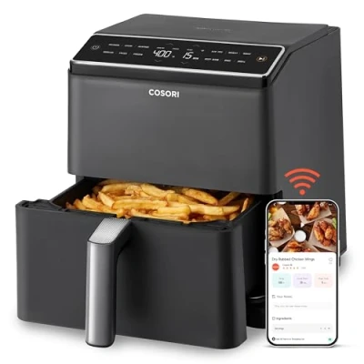 COSORI Dual Blaze Smart Air Fryer Oven, 6.4L, No Shaking Double Heating Elements, 12 Functions with APP Control, Dishwasher Safe, Black