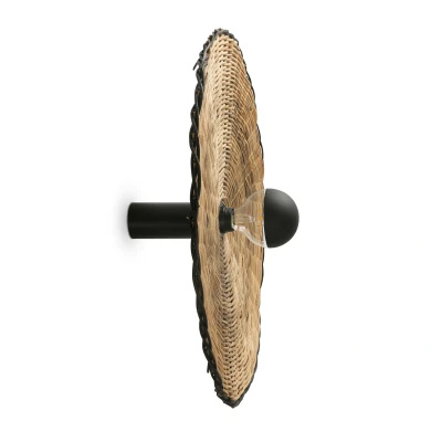 The Costas 600 H140 Black, Rattan Wall/Ceiling Lamp brings elegance and texture to your space. With its generous size and unique material, it serves as a stunning focal point in any room.