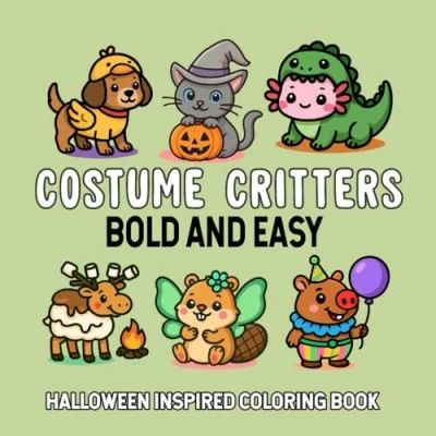 Costume Critters: Bold and Easy Halloween Inspired Coloring Book for Adults or Kids (Fun Grown up Ghouls Goblins)