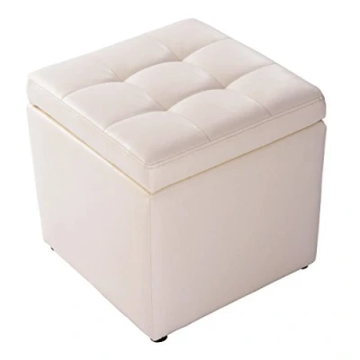 【Dual-purpose Ottoman】It is not only an extra seat and footrest for office or home use, but also can be used as a generous storage box with hinge top, you can open the seat pad to store your towels, toys, magazines and bedding. 【Easy to Clean & Maintain】The surface of our ottoman is made from high quality PU leather, which makes the stool more stylish, very easy to clean and maintain, just wipe the stain with a wet towel. 【Foot Caps】There are four foot caps at the bottom of our ottoman, which can keep it off-ground, scratch-proof and moisture-proof, while preventing it from slipping as a footstool or seat. 【Study & Comfortable Seat】The frame of our bench is made from premium wood, padded with high density sponge, offering great comfort for you while making its maximum weight capacity up to 150 Kg. 【No Assemble Required】There is no need to assemble the ottoman, and the top seat pad can be opened easily with flexible and strong hinge, which will save your time and energy. Besides, the weight of our ottoman weighs only 4 Kg, you can move it to anywhere effortlessly.