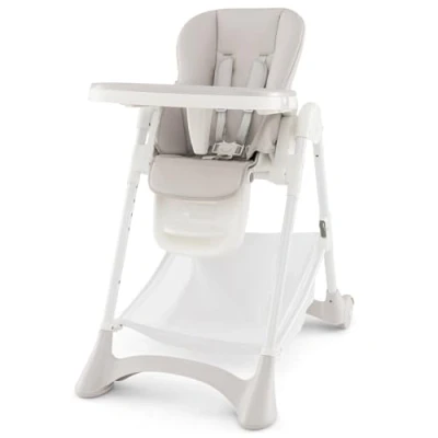 【Flexible Adjustment】This high chair is designed to grow with your baby. It has 6 seat height adjustment, 3 footrest positions, 3 footrest lengths, 5 recline positions and 3 adjustable tray positions, which allows you to customize it to your child's needs as they grow. From infant to toddler, our high chair is there for every stage. 【Stable & Safe Design】Your baby's safety is our top priority. This feeding chair features a 5-point safety harness with 2 safety harness positions. The anti-falling baffle and non-slip feet ensure increase security. Enjoy peace of mind knowing your baby is safe. 【Cleanup is a Breeze】Mealtime can get messy, but our baby highchair makes cleanup a breeze. The waterproof PU seat cushion is quick to wipe down, and the detachable double tray is dishwasher safe, ensuring hassle-free maintenance. 【Foldable & Mobile Highchair】Our folding baby high chair can be easily folded and stored when not in use, making it ideal for smaller spaces or for taking on the go. The hooks on the rear legs are designed for convenient tray storage. Plus, the rolling rear wheels with brakes allow for easy movement. 【One Chair, Multiple Uses】Our high chair can be used for independent eating, playing, feeding and resting, which accompanies the growth your kids. The storage basket at the bottom adds extra storage space for toys and other baby essentials.