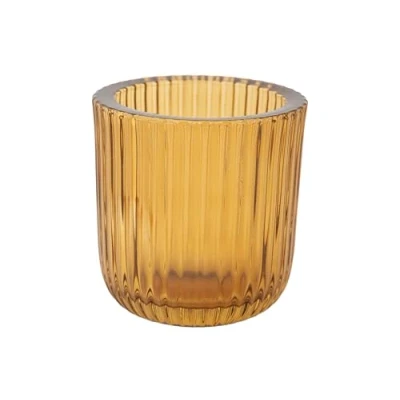 Cosy Home Set of 6 Glass Ribs Candlesticks, Amber, 7.5 x 8 cm