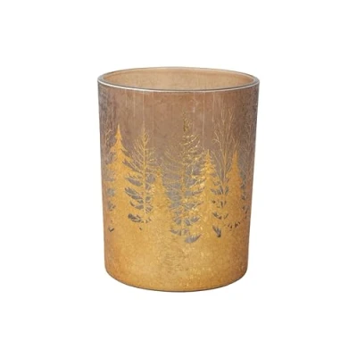 Cosy Home Set of 6 Gold Glass Candlesticks with Crack Trees Design, 10 x 12.5 cm
