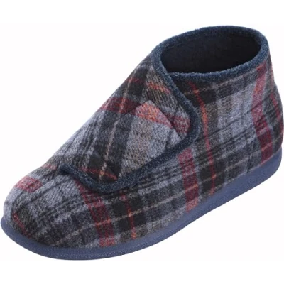 Cosyfeet Robbie Navy Russet Check 7 3H Extra Wide Men's Slippers