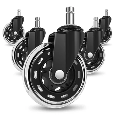 【Floor-Safe For All Surfaces】 Not for 1-KEA office chair. Made from extra-thick, non-marking soft polyurethane, these wheels for office chair protect delicate floors from scratches, scuffs, and dents. Perfect for hardwood, tile, laminate, vinyl, and even carpet—no chair mat required. 【Smooth & Silent Glide】 Crafted from lightweight elastic polyurethane and fitted with four precision bearings, these desk chair wheels deliver smooth, jam-free movement. Whether you're working, gaming, or moving near a sleeping baby, they roll quietly—keeping your space calm and focused. 【Protect Your Space, Effortlessly】Designed with a floor-friendly approach, these chair wheel replacements roll smoothly without damaging your flooring. Move freely and confidently, while keeping your home or office looking its best. 【Built To Hold More—Up To 650lbs (295kg)】 Engineered with premium steel, heavy-duty rubber, and precision ball bearings, these replacement wheels for office chair offer impressive strength and long-lasting support. Ideal for heavier users or high-traffic workspaces. 【Fast, Tool-Free Installation】 No tools needed—just push them in and you're ready to roll. The quick 3-step setup takes under 10 minutes, making it an effortless upgrade to your existing chair.