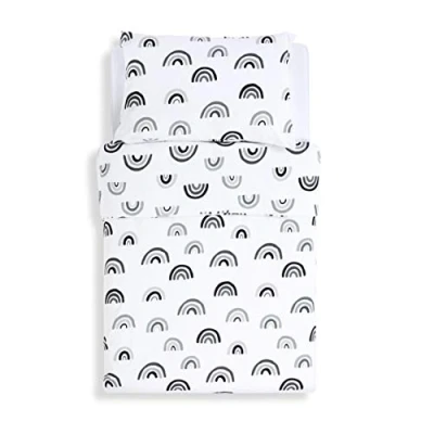 100% JERSEY COTTON: This cot bed duvet cover set is lovingly made from luxurious jersey cotton with a cute monochromatic rainbow design, to create the softest and most comfortable sleep environment. LIGHT & BREATHABLE: This Snüz cot bed pillowcase and duvet are specially designed to help control your little one’s body temperature as they sleep for higher quality rest. MACHINE WASHABLE: Wash at 40 degrees and tumble dry on a low heat for convenient, easy washing. MADE TO LAST: Durable, high quality material ensures your bedding will withstand regular washing and wear, seeing your little one through to their toddler years. UNIVERSAL SIZE: This cot pillow case and duvet set (120cm x 100cm duvet, 40cm x 60cm pillow) is designed to fit the SnüzKot duvet and most cot size duvets.