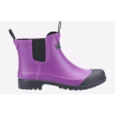 Short rubber womens wellington from Cotswold, Blenheim has the classic chelsea look and is not just for the garden! This style would look great under your jeans around town, it's extremely flexible with a heavily cleated sole for grip and durability - Short Rubber Wellington in classic chelsea style - Fully waterproof - Front and rear pull loop - Twin elasticated gusset with inside cover - Heavily cleated sole for grip and durability - Contrast Black toe cap - Diamond Toe Cap and Foxing - Extremely flexible - Wet weather ideal for gardening
