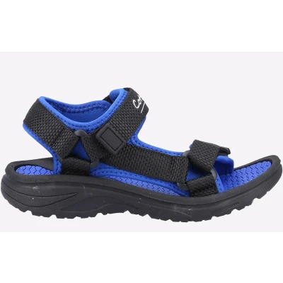 Childrens summer walking leisure sandal from Cotswold, Bodiam is crafted with lightweight recycled uppers, triple touch fastening straps and has width adjustment for a secure fit. Sporty Rugged 360 traction sole for superior grip - Recycled upper- Triple Touch Fastening straps - Summer walking leisure sandal - Lightweight PU and Neoprene upper - Sporty Rugged 360 traction sole