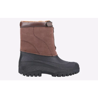 Venture hybrid weather boot from Cotswold. A stylish design with a luxury Faux Suede shaft and a fully waterproof moulded rubber galosh designed to combat the elements. Front zip entry and warm faux fur lining. - Faux Suede Fabric Upper - Waterproof rubber galosh - Hard wearing outsole providing excellent durability and traction - Easy fitment with the use of front zip and a Fastening Strap - Ideal Boot for all seasons - Waterproof only up to galosh area.