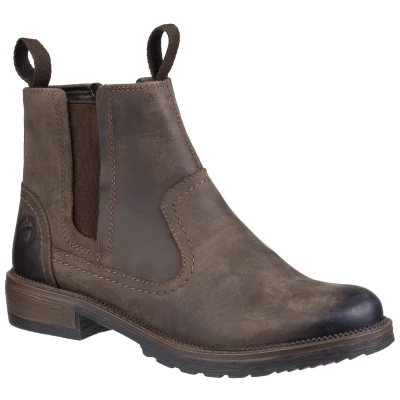A traditional country boot with classic oiled leathers and comfort-fit asymmetric elasticated gussets. Laverton is a stylish performer in wet weather with its internal waterproof membrane and easy-wear pull loops.Comfortably soft crazy horse oily leather upper. Vintage-look tonal contrast stitching accents. Modern half cut asymmetric stretch panels. Durable canvas front and rear pull loops. Signature debossed Cotswold acorn logo.