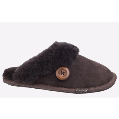 Inspired by cosy country cottages and village home comforts of the Cotswold Hills, Lechlade is a premium slipper with luxurious double faced sheepskin, soft suede uppers and gentle rubber grips for ultimate comfort. - Crafted with a soft leather suede upper - Luxurious soft thick sheepskin lining and footbed - Large double faced sheepskin wool cuff - Bold natural toned button detail - Comfort textile sole with rubber grip panels