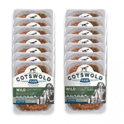 Cotswold Raw Dog Food, Active 80/20 Mince, Adult BARF Premium British Meat Food for All Dogs, Frozen Meal, Wild Mixed Mince 7kg