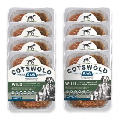 Cotswold Raw Dog Food, Active 80/20 Mince, Adult BARF Premium British Meat Food for All Dogs, Frozen Meal, Wild Mixed Mince 8kg