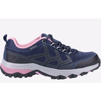 These Wychwood womens hiking shoes from Cotswold are designed with a synthetic and textile mix upper allowing your feet to move more freely, whilst the waterproof membrane construction provides breathability and ventilation, helping to keep feet cool and dry whilst out hiking. A reinforced, padded midsole delivers an abundance of comfort and protection, whilst the versatile outsole is manufactured with durable rubber in a robust rugged style suitable for use on a wide range of surfaces and guaranteed to deliver fatigue free wear all day long. Finished off with a heel pull tab for easy on off wear and finished with Cotswold branding for that added finishing touch, these Wychwood hiking shoes are a practical choice when it comes to traversing the trails. - Synthetic / textile mix upper - Constructed with 85% recycled PET upper - Full lace up front delivers a locked down fit - Breathable waterproof membrane - Heel pull tab for easy on / off wear - Padded heel and ankle collar - Eva footbed enhances underfoot comfort - Durable rugged outsole - Cotswold branding throughout *Do your bit for the environment as every pair of these Cotswold Shoes sold supports National Forest tree planting.*