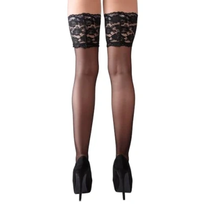 Material: hold-up stockings, microfibre stretch, 20 denier, 90% polyamide, 10% elastane Wearing styles: erotic stockings for women, seduction of partner, role play Appearance: black stockings with 14 cm wide lace trim for her, elegant and sexy Product details: sexy and elegant lingerie in microfibre stretch quality, size: 5, 20 denier Box contents: 1 x Cotelli Collection stockings with lace details in black