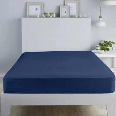 Cotton Comfort Bedding 100% Luxury Brushed Flannelette Fitted Sheet 30cm Deep Bed Sheets Fluffy Soft & Machine Washable Flannel (Navy Blue, Small Double)