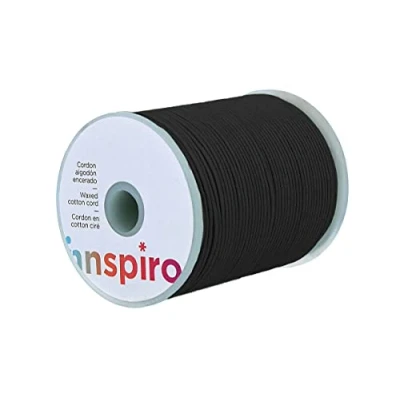 INNSPIRO Fine Waxed Cotton Cord, Black, 1 mm, 5 m.