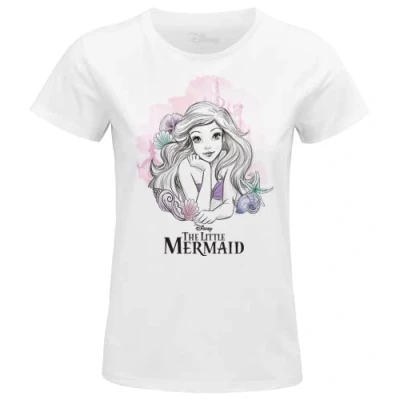 Disney Little Mermaid - Watercolor Ariel WODLITLTS027 Women's T-Shirt, White, Size M 100% Official Licensed Products Machine wash at 30°C inside out