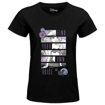 Disney Little Mermaid - Find Your Own Voice WODLITLTS033 Women's T-Shirt, Black, M 100% Official Licensed Products Machine wash at 30°C inside out
