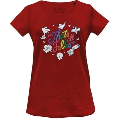Looney Tunes That's All Folks Rainbow WOLOONETS088 Women's T-Shirt, Red, Size XL 100% Official Licensed Product Machine wash at 30°C inside out
