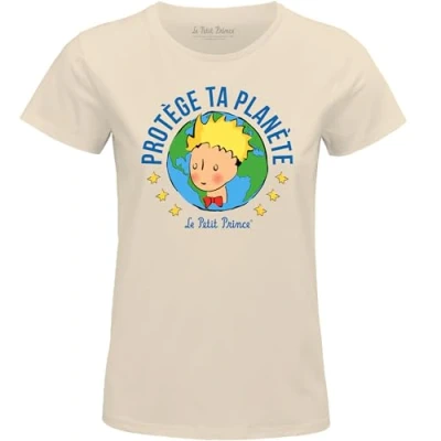 THE LITTLE PRINCE, "PROTEGE YOUR PLANET", WPTTTS007, NATURAL, SIZE L 100% Official Licensed Product Machine wash at 30°C inside out