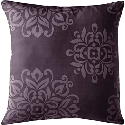 Cotton Rich Jacquard Cushion Covers 45 x 45cm Floral Prints Zipped Machine Washable Strong & Smooth [Plum 224]