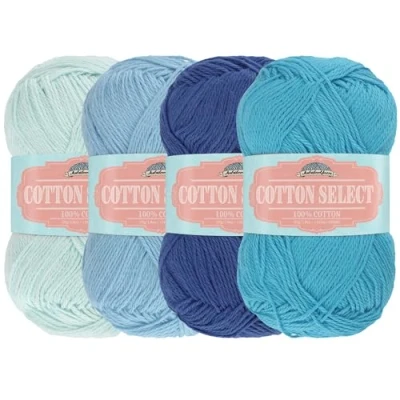 Cotton Select Sport Weight Yarn Color Palette Pack 100% Fine Shades of Blue 4 Skeins