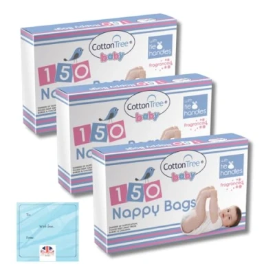 Cotton Tree Nappy Bags Scented 150pk x 3 Total of 450 Biodegradable Fragranced Sacks Bundle by Great British Home