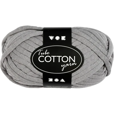 AmazonCotton tube yarn, grey, L: 45 m, 100 g/ 1 ball Fabric yarn in 100% cotton, knitted like a nylon fillet, making the yarn full. Especially suitable for heavy knitting or crocheting of pads, blankets, puffs, bags, etc.