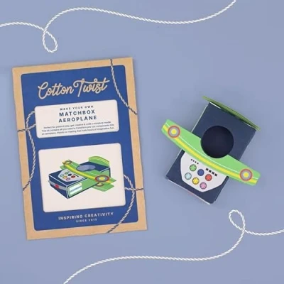 COTTON TWIST Kids Make Your Own Matchbox Aeroplane Craft Kit Children Creative Fun Game Play Set DIY Activity Box for Boys and Girls Single Unit