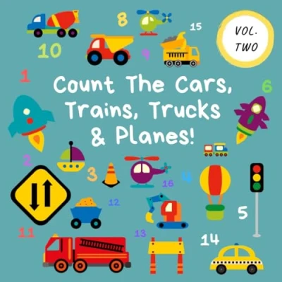 Count The Cars, Trains, Trucks & Planes!: Volume 2 A Fun Activity Book for 5 Year Olds (Kids Who Counting Books Ages 3 Construction Vehicles, Cars Trucks)
