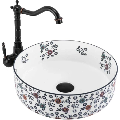 Transport your bathroom to a world of rustic elegance with the Rea Stefania Fiori countertop washbasin. This unique model features a rich, multi-colored floral pattern that adorns both the exterior and interior of the bowl. Made of the highest quality sanitary ware, it combines artistic design with practicality, perfectly complementing vintage-style interiors. Dual decoration – a unique, folk-inspired floral pattern appears on both the exterior and interior of the washbasin. The high-quality sanitary ware guarantees resistance to everyday use and is exceptionally easy to clean. Countertop installation – allows for a modern design and fully showcases the beauty of the patterned body on any countertop. The round bowl shape – a classic and timeless form that is both elegant and practical. No tap hole – designed for installation with tall (freestanding) or concealed (wall-mounted) taps. No overflow hole – emphasizes the minimalist and sleek design of the inner bowl, ensuring a perfectly