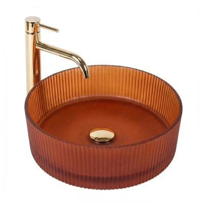 Add A Distinctive Accent To Your Bathroom With The Rea Suri Countertop Washbasin. This Unique Model Stands Out For Its Grooved Texture And Warm, Smoky, Amber Brown Color. Made Of High-Quality Tempered Glass, It Combines A Delicate Form With Exceptional Durability. The Grooved Structure – Vertical Grooves On The Bowl'S Outer Surface Give It A Unique Look And Evoke Classic Design. Tempered Glass – A Material Highly Resistant To Mechanical Damage And Temperature Changes. Amber Brown Color – A Smoky, Warm Glass Color That Provides A Distinctive Color Accent. Matte Finish – The Satin Surface Is Aesthetic And Practical For Everyday Use. Countertop Installation – Allows For Installation On A Cabinet Or Countertop, Showcasing The Entire Sink. Universal Use – The Geometric Shape And Color Make This Model Suitable For Vintage, Boho, And Modern Interiors. The Rea Suri Glass Washbasin Combines Material Durability With A Decorative Form. Matte, Grooved Glass In Amber Shade Is A Solid And Aesthetic