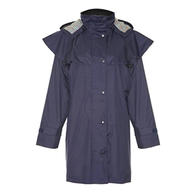 Country Estate Ladies Windsor Waterproof Fabric Lightweight Lined Riding Cape Coat Jacket Trench Coats Macs Detachable Hood Taped Seams Walking Outdoors Countrywear (12, navy blue)