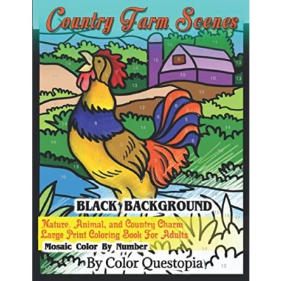 Country Farm Scenes BLACK BACKGROUND Mosaic Color By Number Nature, Animal, and Charm Large Print Coloring Book For Adults: Anti Anxiety Relaxation (Adult Number)