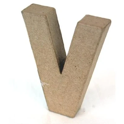 Papier Mache Letter V Our own-brand range of biodegradable low-cost papier mache shapes (made from recycled waste products e.g. old newspapers cardboard etc) have been hand-made using 100% recycled materials and organic glue. The designs are supplied in a buff or manila colour ready to paint or decorate with acrylics inks poster paints stamps polymer clay foam clay decoupage (or Decopatch) papers napkins glitters embelishments beads fabric and much more. Dimensions: 10cm - 4 Sold in PACKS OF 5 We also supply 20.5cm medium letters under product code CLP2001 to CLP2026 in packs of 3 and have had them made as 3D boxes in packs of 3 under product codes CLP2301 to CL2326. CLP2122 MPN ED3282/10/V