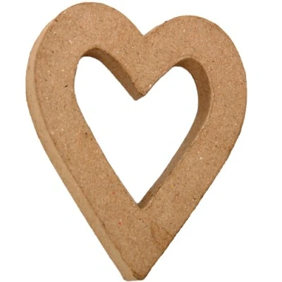 3D Heart outline in Papier Mache 10cm x 12cm x 1.5cm Ready to paint or decorate with a variety of materials Made from 100% recycled materials and organic glue Part of a range of Paper Mache shapes